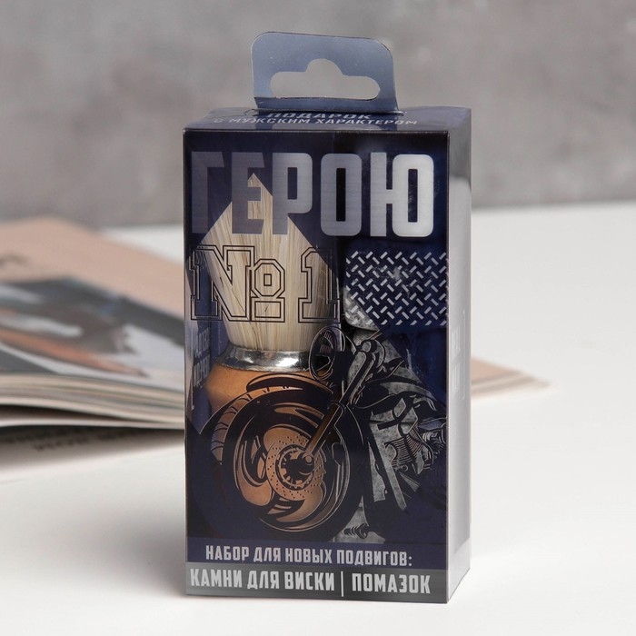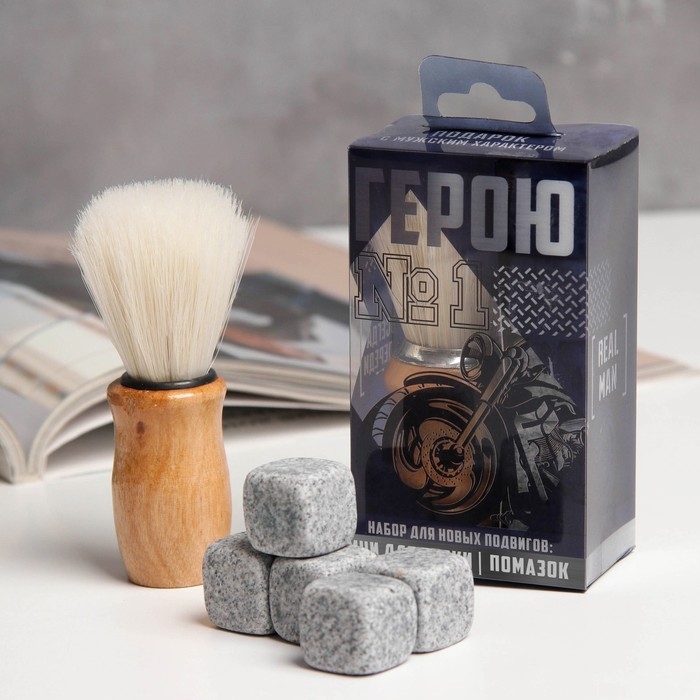 Подарочный набор помазок и камни для виски «Герою №1»
