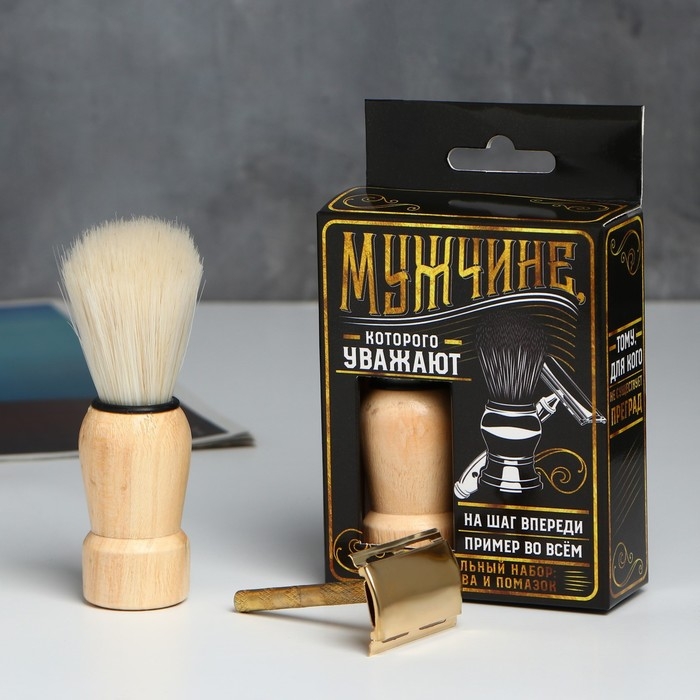 Подарочный набор помазок и бритва «Мужчине, которого уважают»