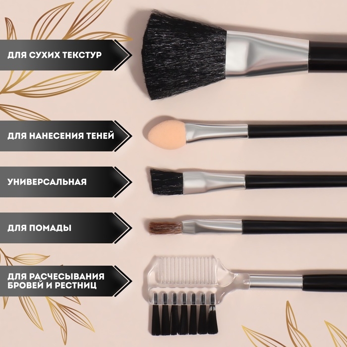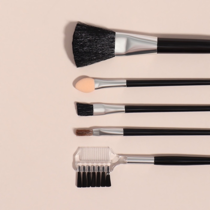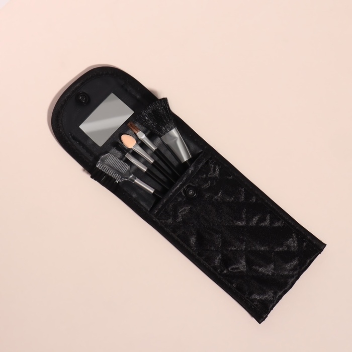 Набор кистей для макияжа «Compact», 5 предметов, футляр с зеркалом, цвет чёрный