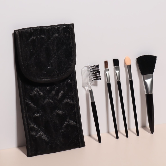 Набор кистей для макияжа, 7 предметов, чехол на кнопке, цвет чёрный