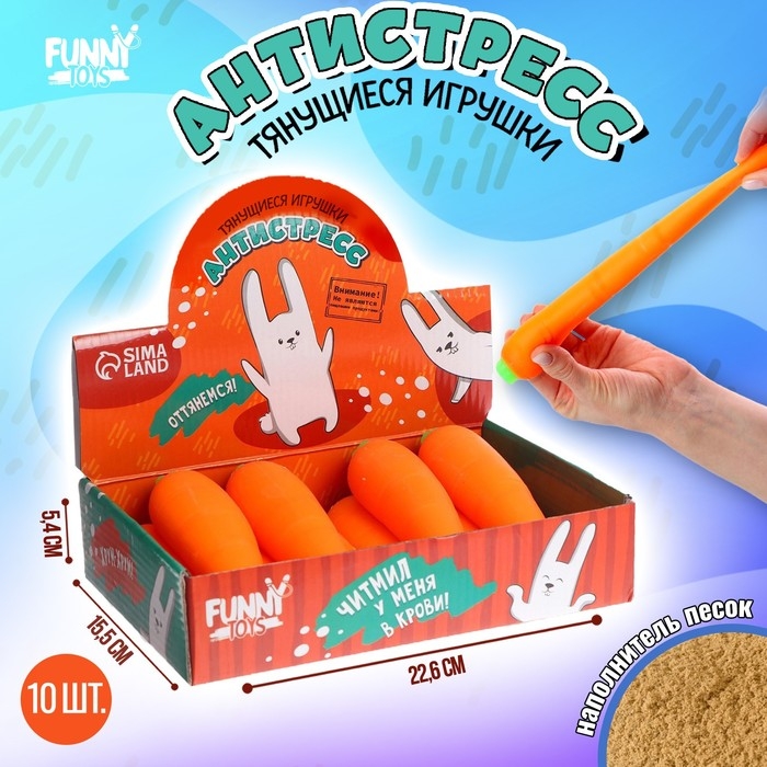 Мялка антистресс тянучка «Морковка», с песком, в шоубоксе