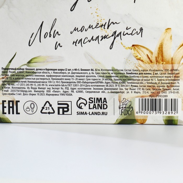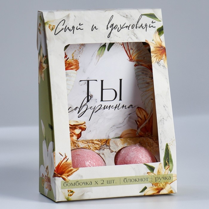 Подарочный набор «Сияй и вдохновляй»: блокнот А6 32 листа, ручка и бурлящий шар 2х40 гр