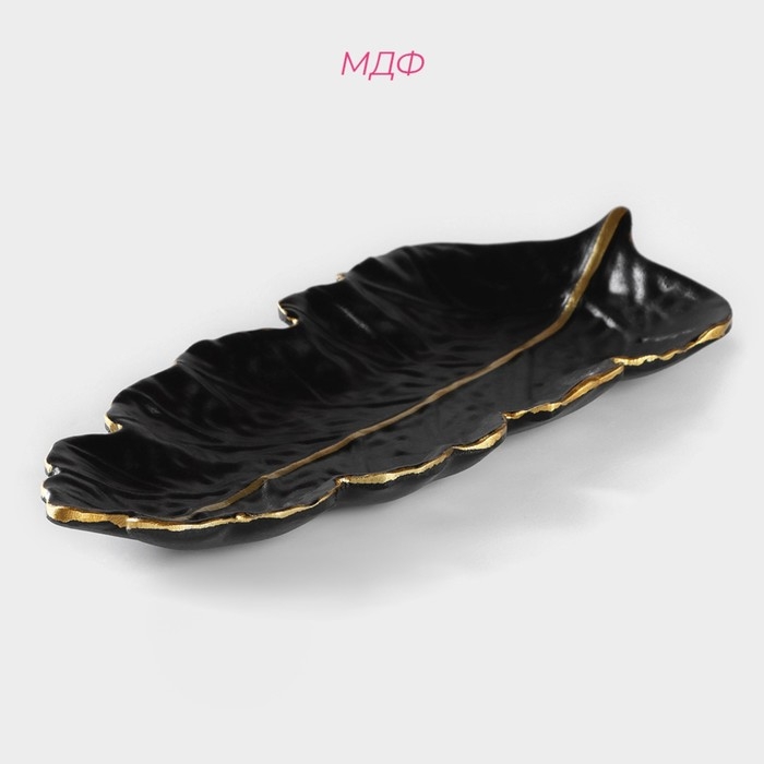 Блюдо для фруктов Доляна «Золотой лист», 38×15,5 см, цвет чёрный