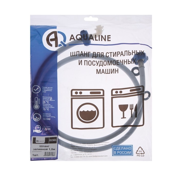Заливной шланг для стиральной машины AQUALINE 1561, индивидуальная упаковка, 1.5 м