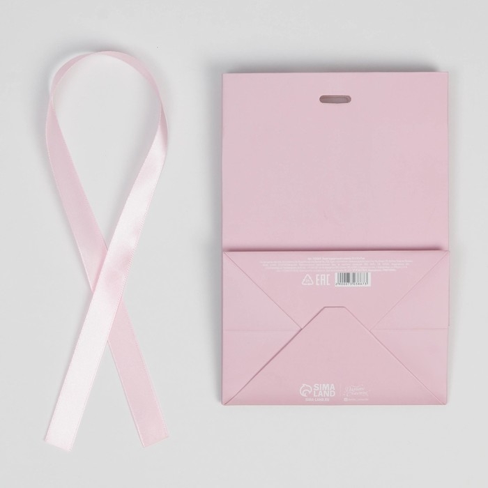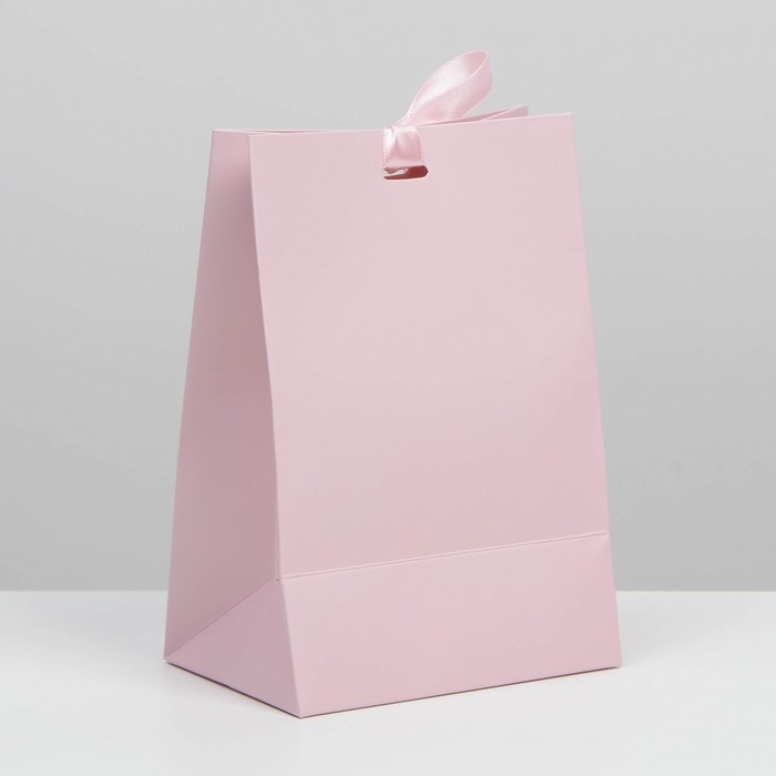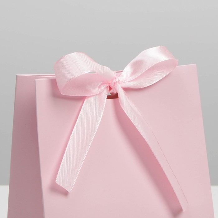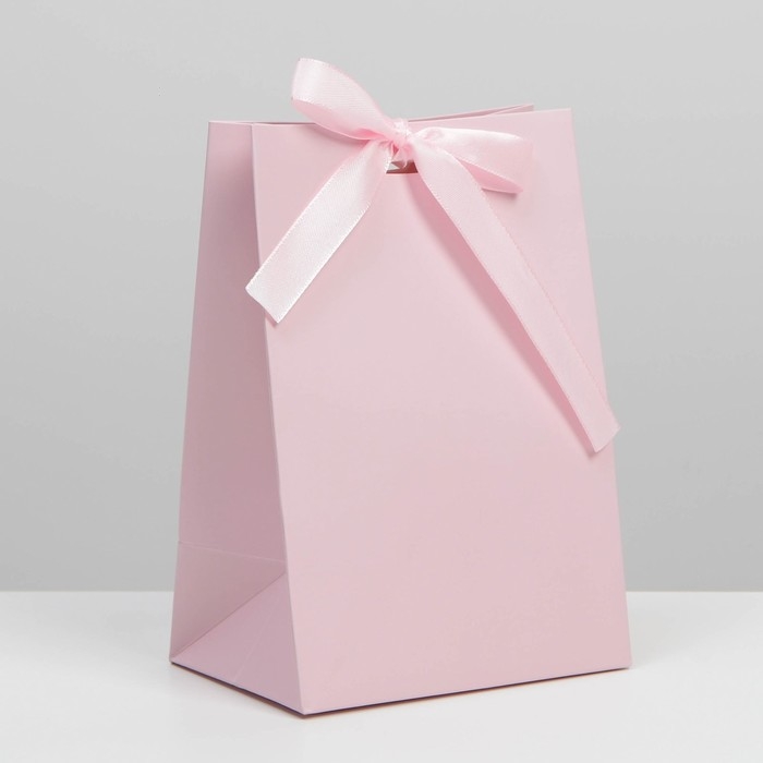 Пакет подарочный с лентой, упаковка, «Розовый», 13 х 19 х 9 см
