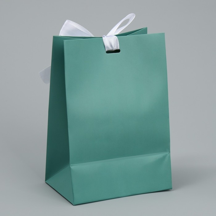 Пакет подарочный с лентой, упаковка, «Тиффани», 13 х 19 х 9 см
