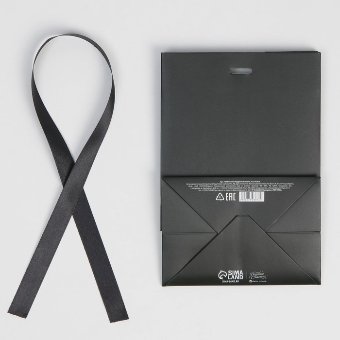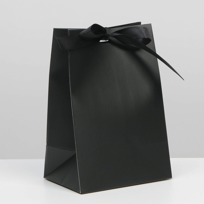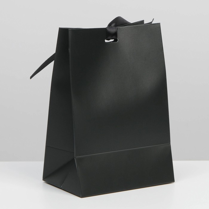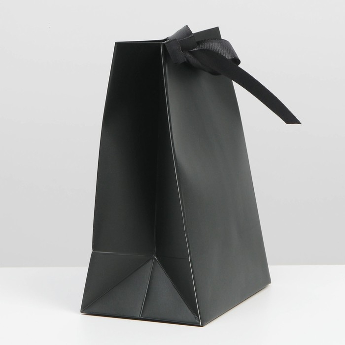 Пакет подарочный с лентой, упаковка, «Чёрный», 13 х 19 х 9 см