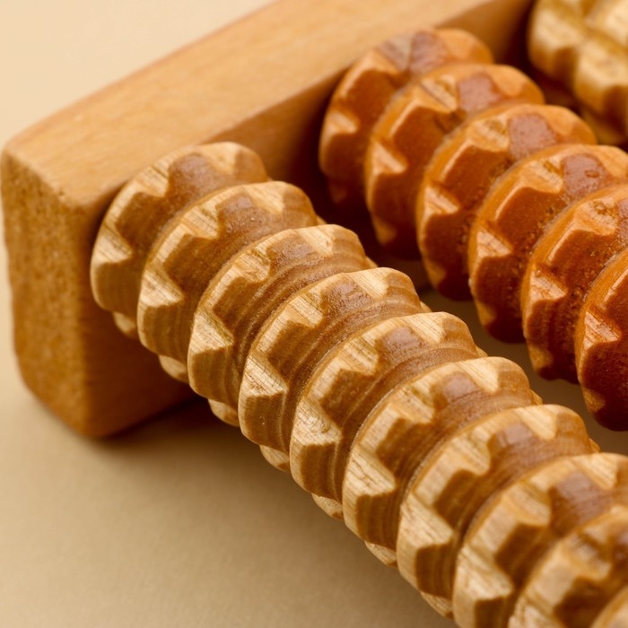 Массажёр «Барабаны», 5 рядов с шипами, 27 × 19 × 5 см, деревянный