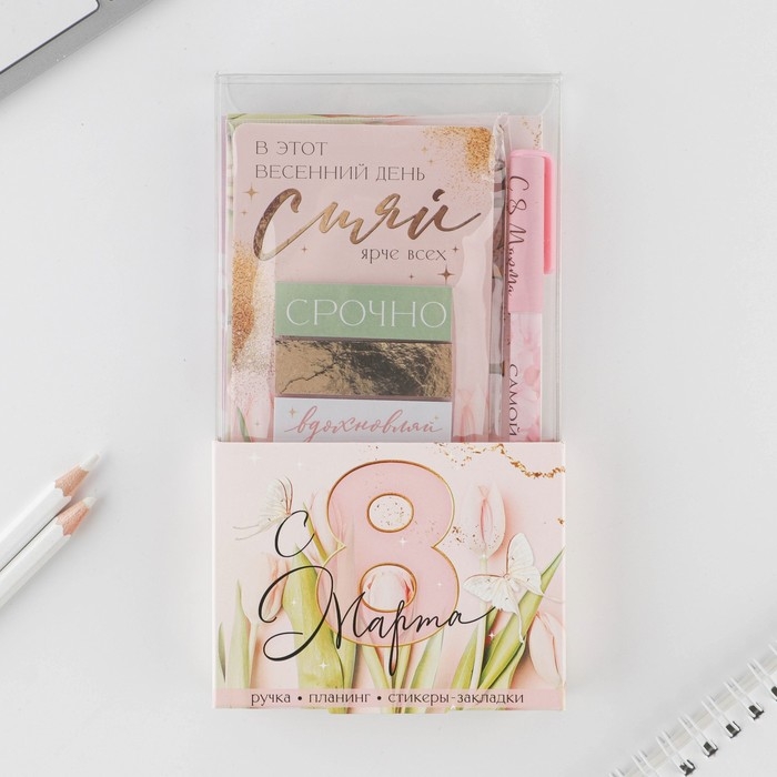 Подарочный набор «С 8 марта» планинг 50 листов, стикеры-закладки и ручка