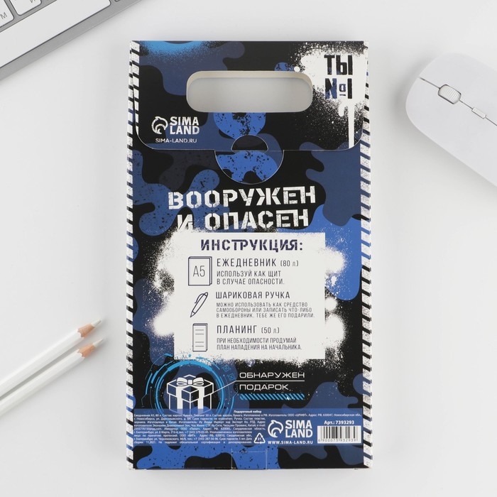 Подарочный набор «23.02»: ежедневник А5 80 листов, планинг 50 листов и ручка пластик