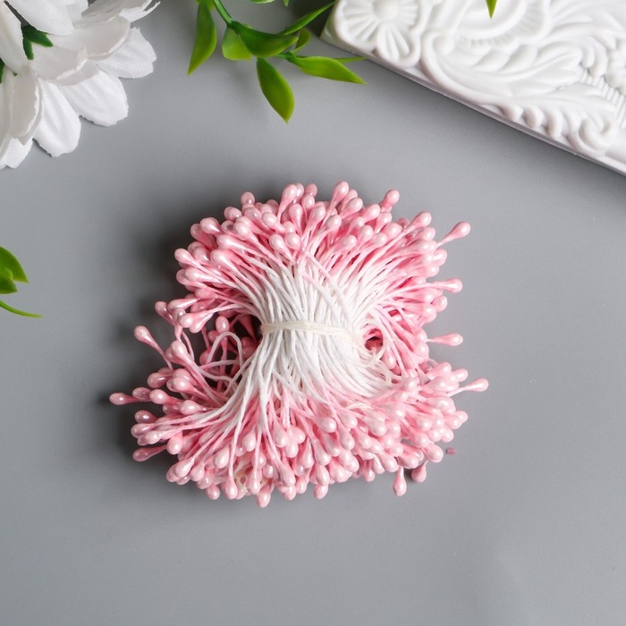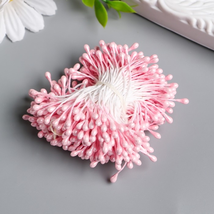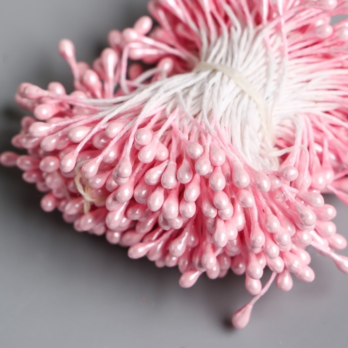 Тычинки для цветов "Капельки глянец светло-розовые" набор 300 шт длина 6 см