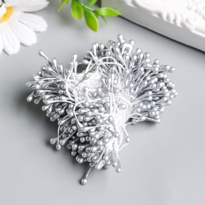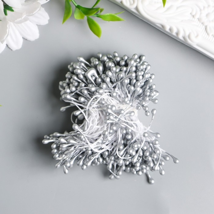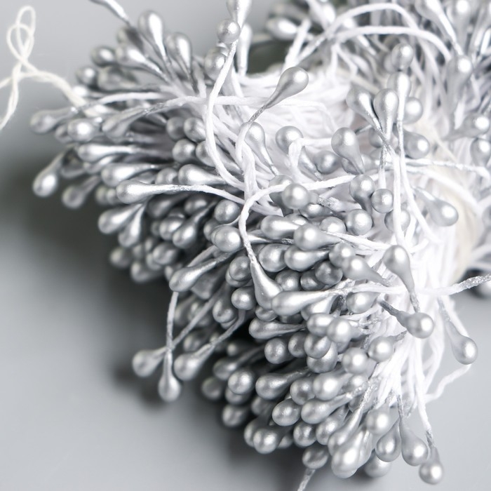 Тычинки для цветов "Капельки глянец серебристые" набор 300 шт длина 6 см