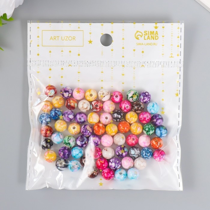Бусины для творчества пластик "Мраморные. Ассорти" d=0,8 см набор 20 гр