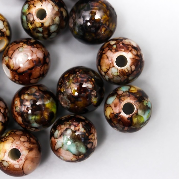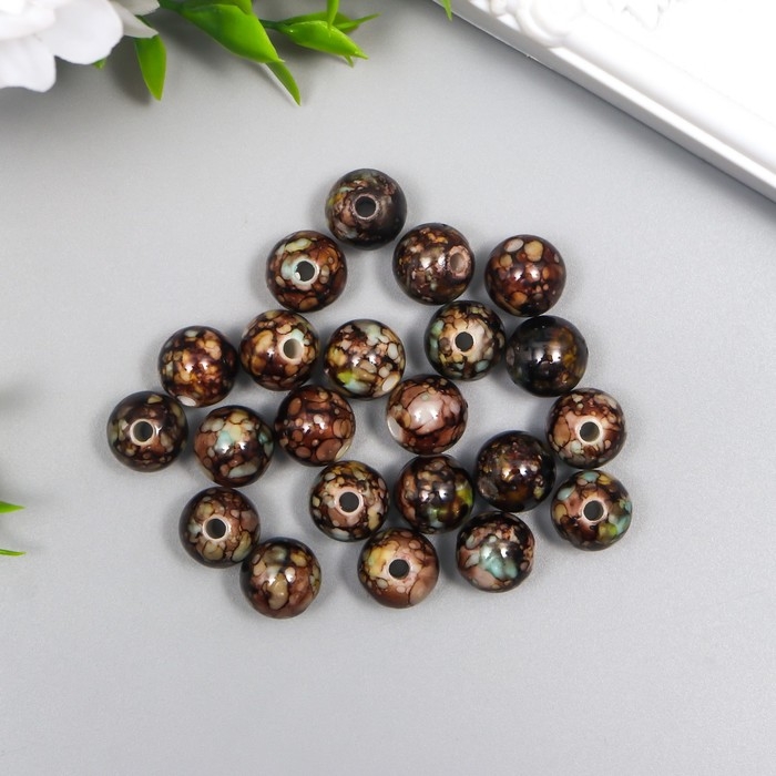 Бусины для творчества пластик "Мраморные. Кофе" d=1,2 см набор 20 гр