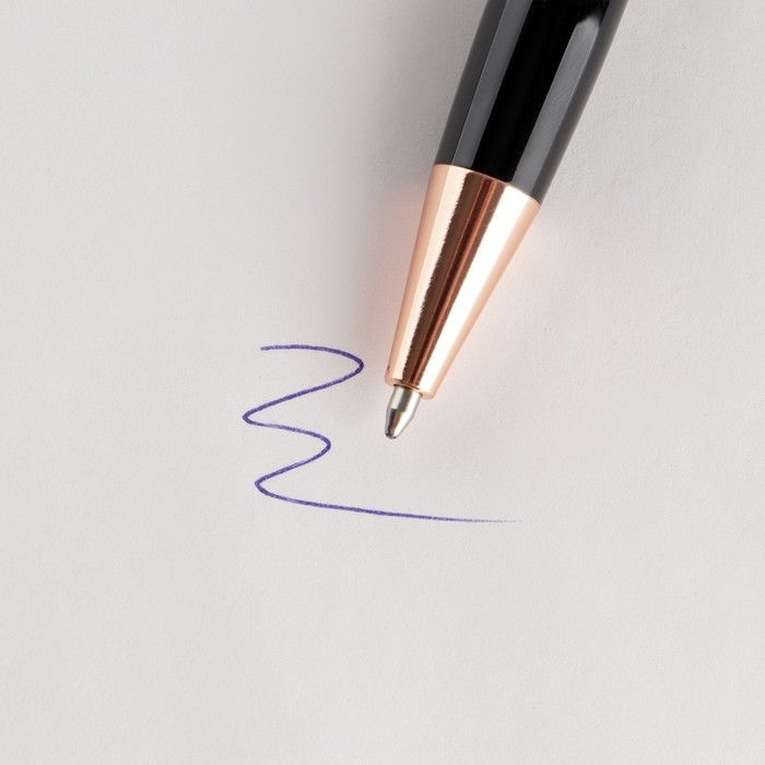 Ручка шариковая синяя паста 0.1 мм, металл рифлёная цвет черный с золотом