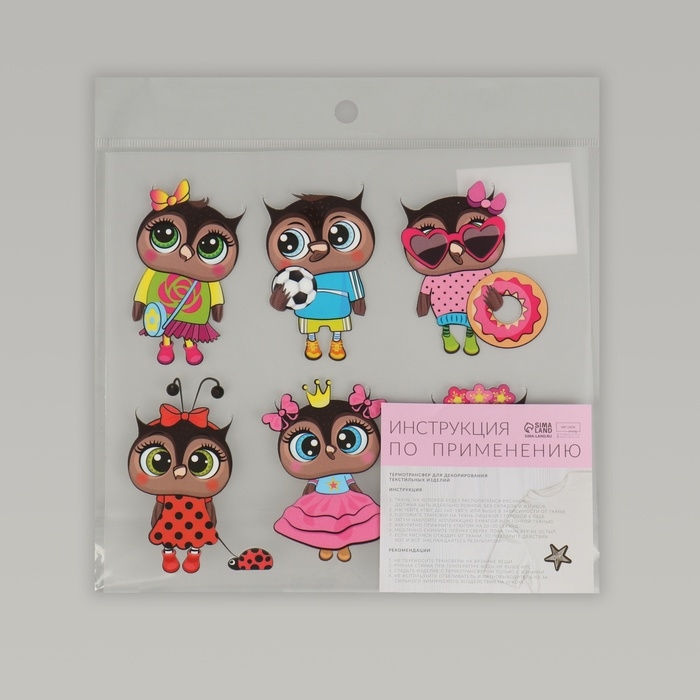 Термотрансфер «Совушки», 19,5 × 21 см, 6 дизайнов, цена за 1 лист