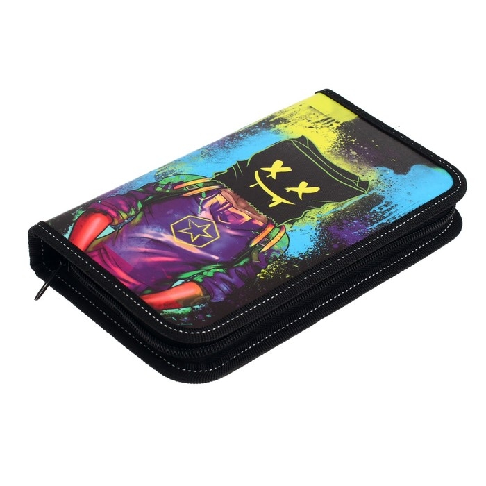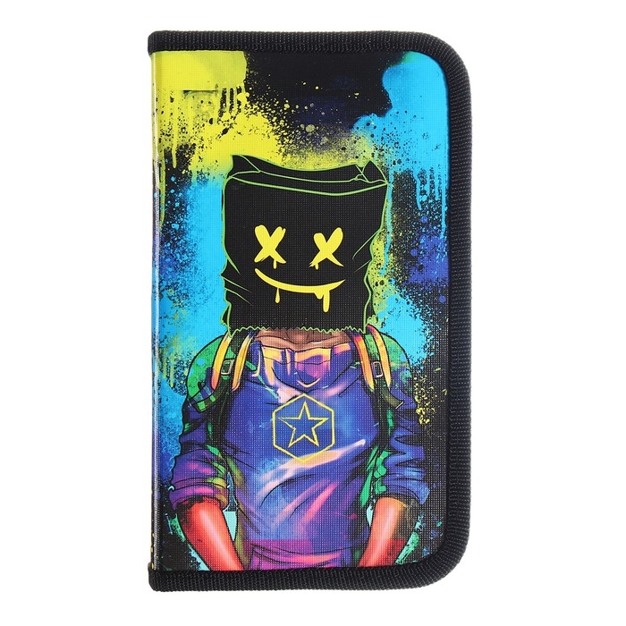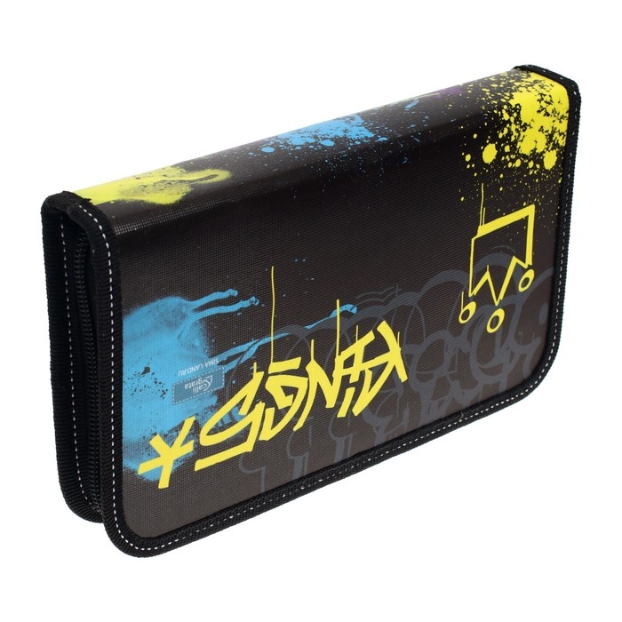 Пенал 1 секция, 140 х 200 х 40 мм, 2 откидные планки, тканевый, ПКТ 09-20-1 "Мото неон"