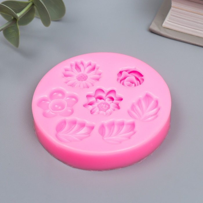Молд силикон "Цветочки и листочки" 7 предметов 6,8х6,8х1 см