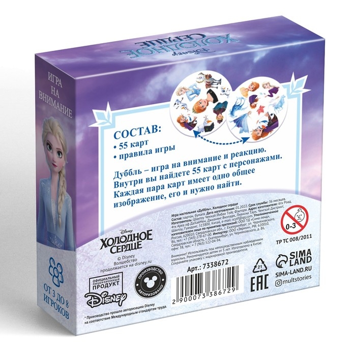 Карточная игра на скорость и реакцию "Дуббль", 55 карт, 5+, Холодное сердце