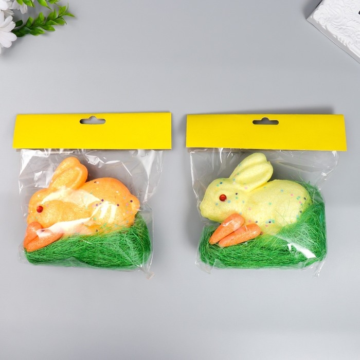 Декор "Кролик - конфетти, в травке с морковками" набор 4 шт МИКС 13 см