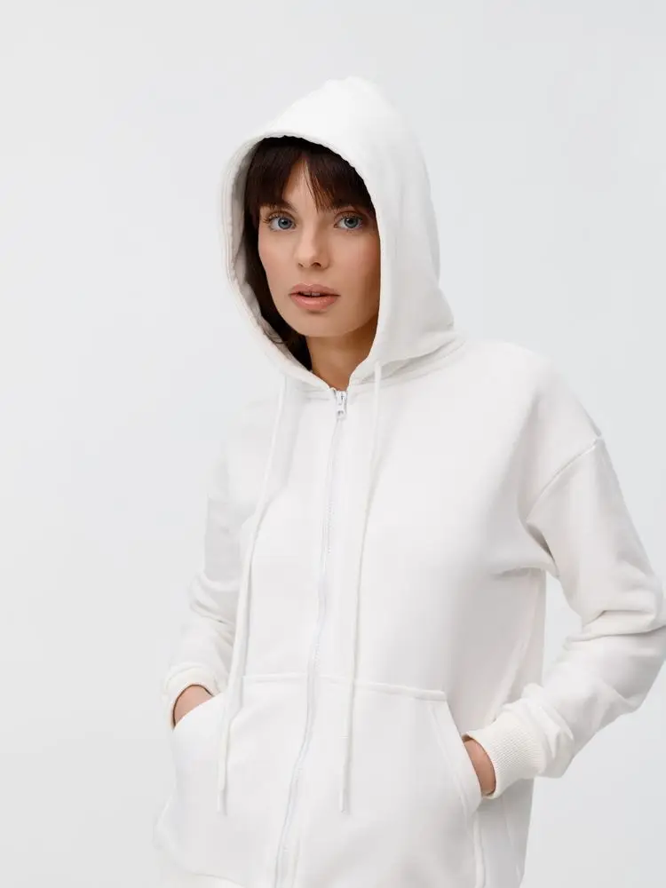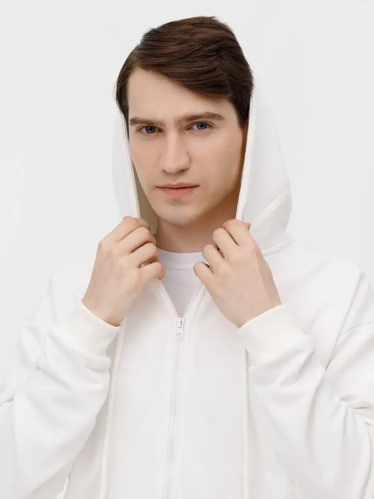 Толстовка унисекс оверсайз на молнии Zippy Terry, белая, размер M/L