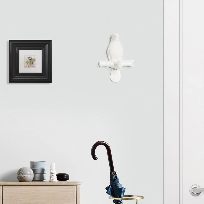Декор настенный-вешалка "Голубь", 10,5 x 7 см, белый