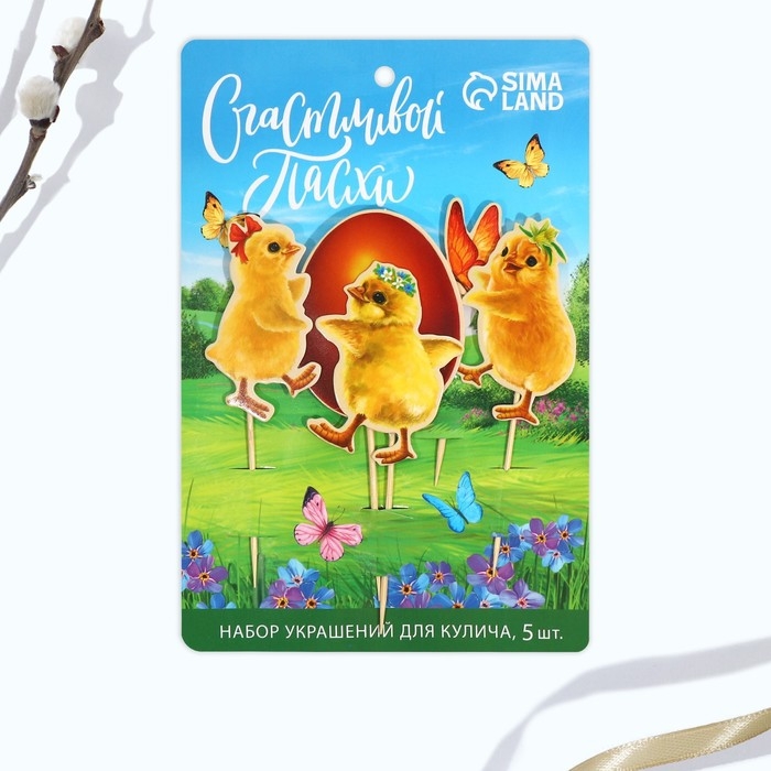 Пасхальный набор для украшения кулича «Цыплята», 11 х 16.5 см