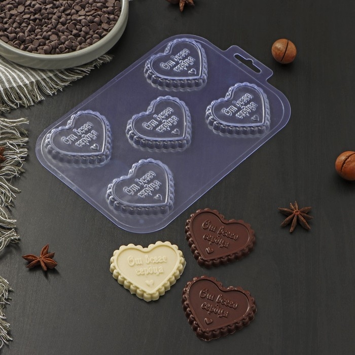Форма для шоколада и конфет пластиковая «Сердечный порыв», 6×6,8×0,77 см, цвет прозрачный