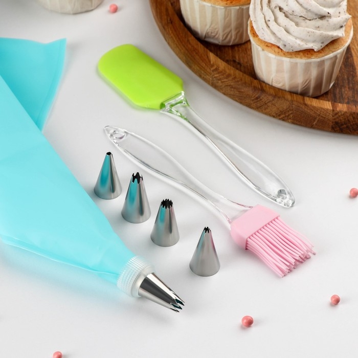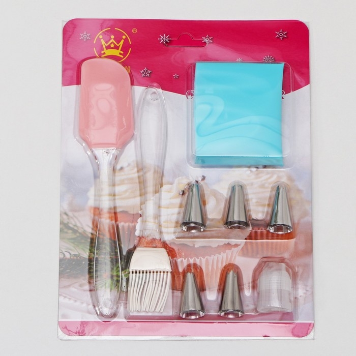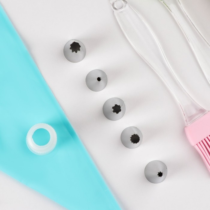 Набор кондитерский «Айс», 9 предметов: лопатка, кисть, адаптер, мешок 30×15 см, насадки 5 шт