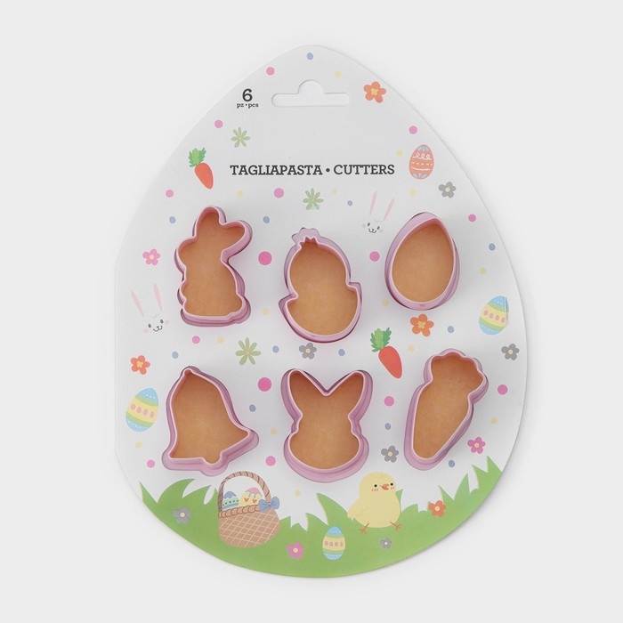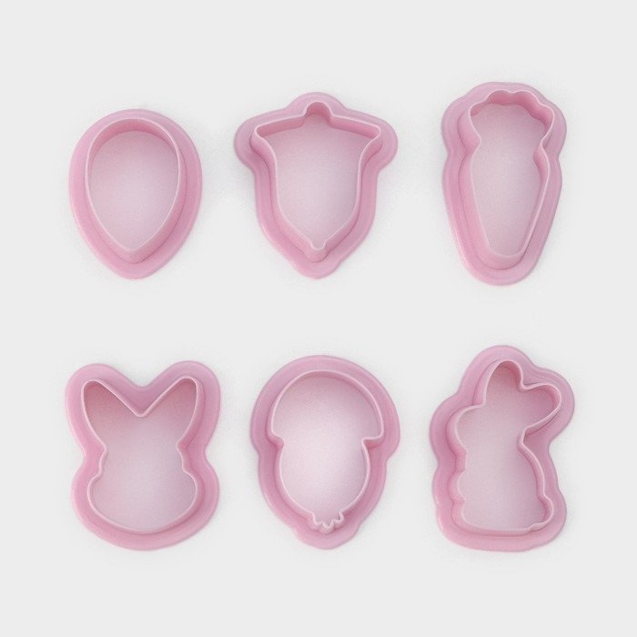 Набор форм для печенья Доляна «Пасхальный», 6 шт, 8×7×2 см, цвет розовый