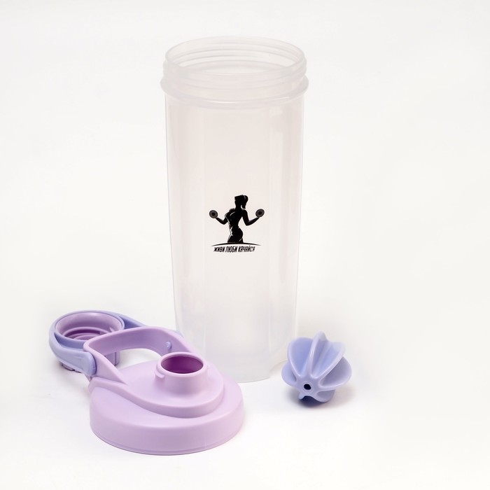 Шейкер, 700 мл, серия: PowerPlus, "Живи, люби, качайся", 23.5 х 7 см, сиреневый