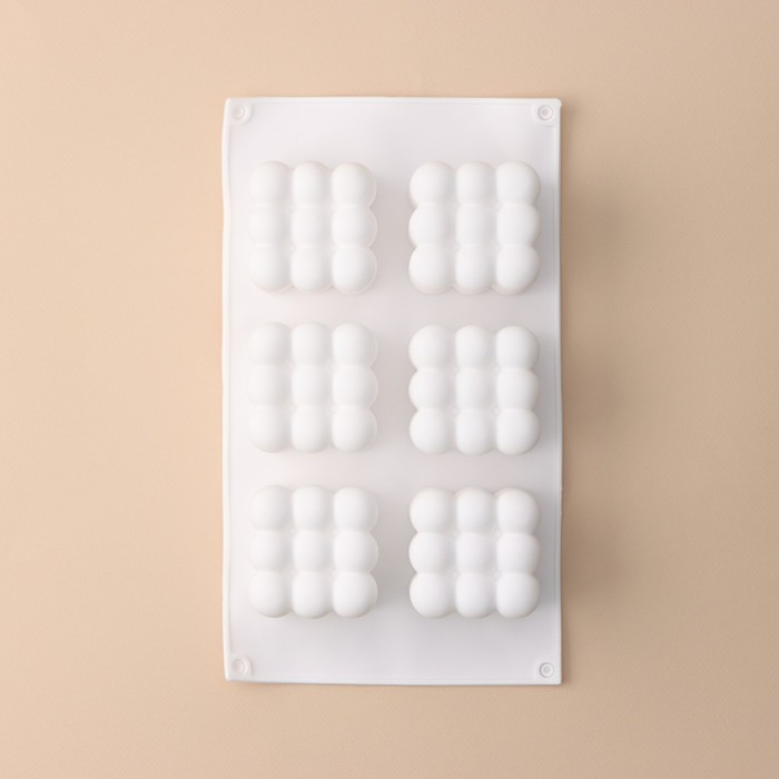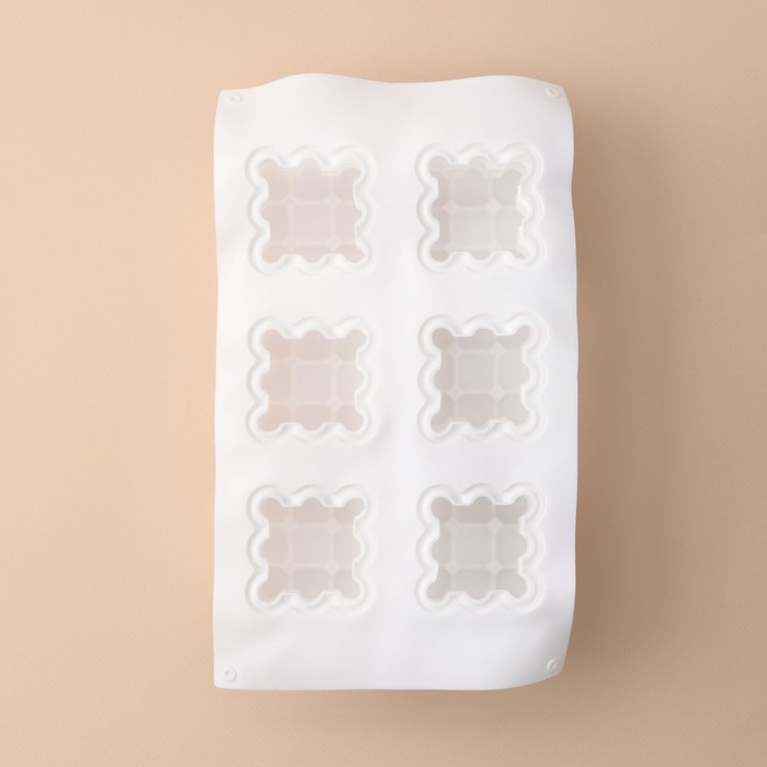 Форма для муссовых десертов и выпечки KONFINETTA «Рафаэль», силикон, 29,7×17,5×5,7 см, 6 ячеек (6,2×6,2 см), цвет белый