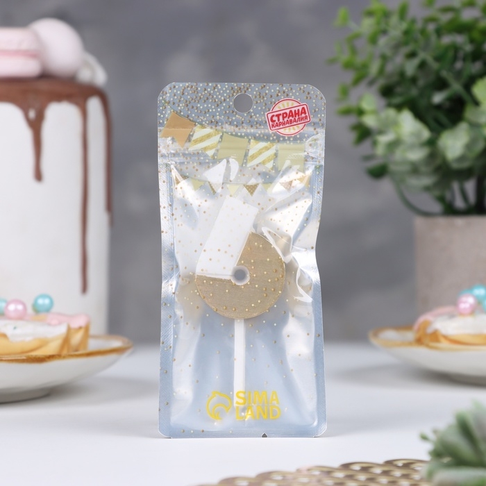 Свеча в торт "Манхеттен", цифра "6", белая с золотом, 5 см
