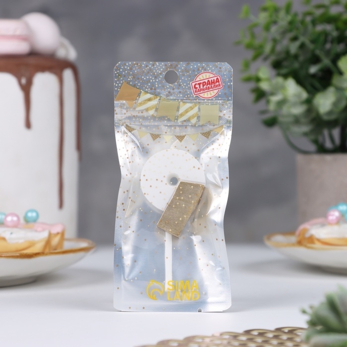 Свеча для торта цифра "Золотой узор", 10,2 см, цифра "1"