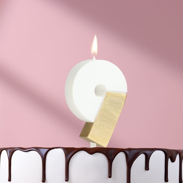 Свеча в торт "Манхеттен", цифра "9", белая с золотом, 5 см