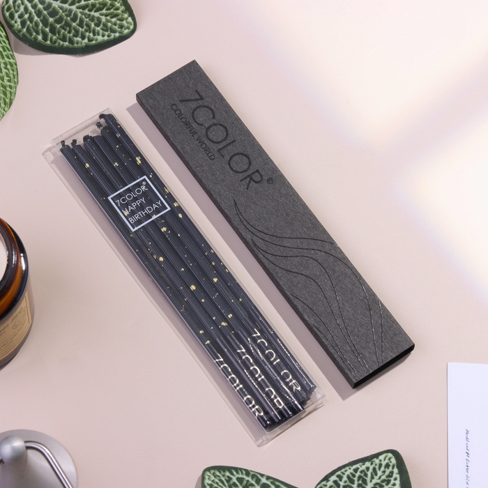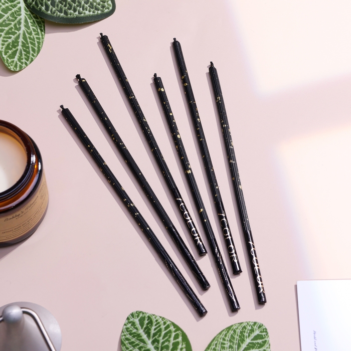 Набор свечей в торт, 6 штук "Исполнение желаний", 16,5 см, чёрный с золотом
