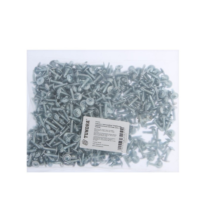 Саморезы "ТУНДРА krep", с прессшайбой, сверлоконечные, 4.2x16 мм, оцинкованные, 1 кг
