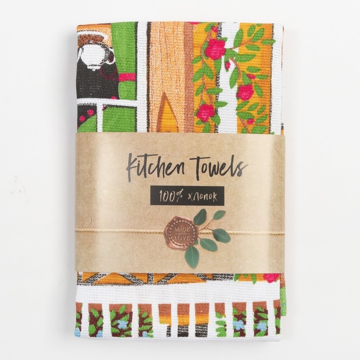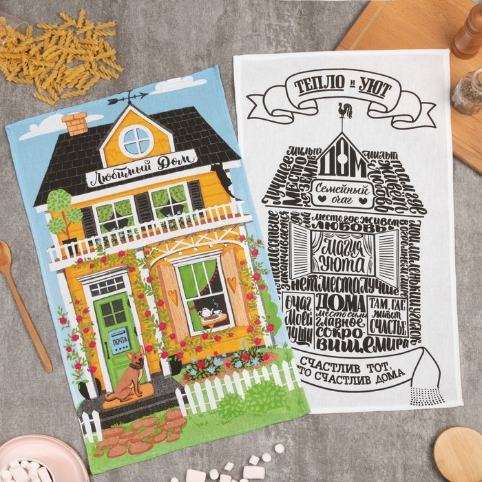 Набор кухонных полотенец Доляна «Семейный очаг», 35х60см-2шт, 100% хлопок