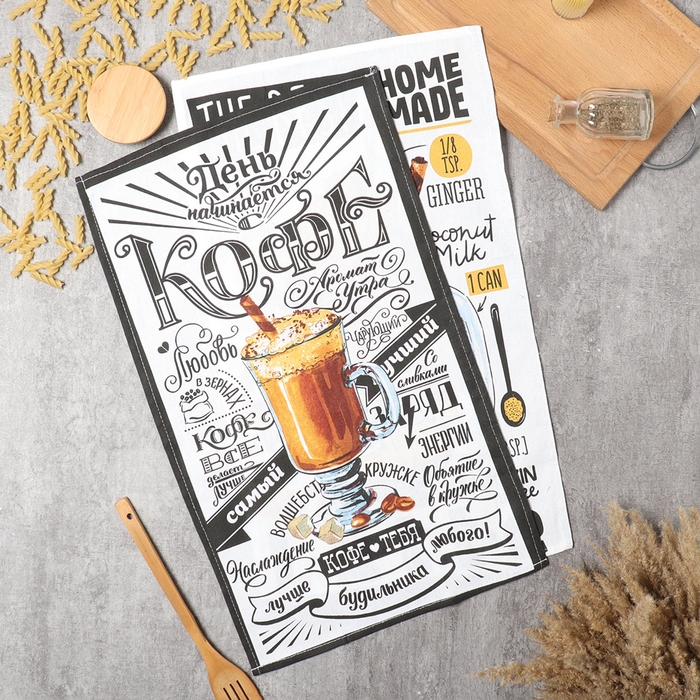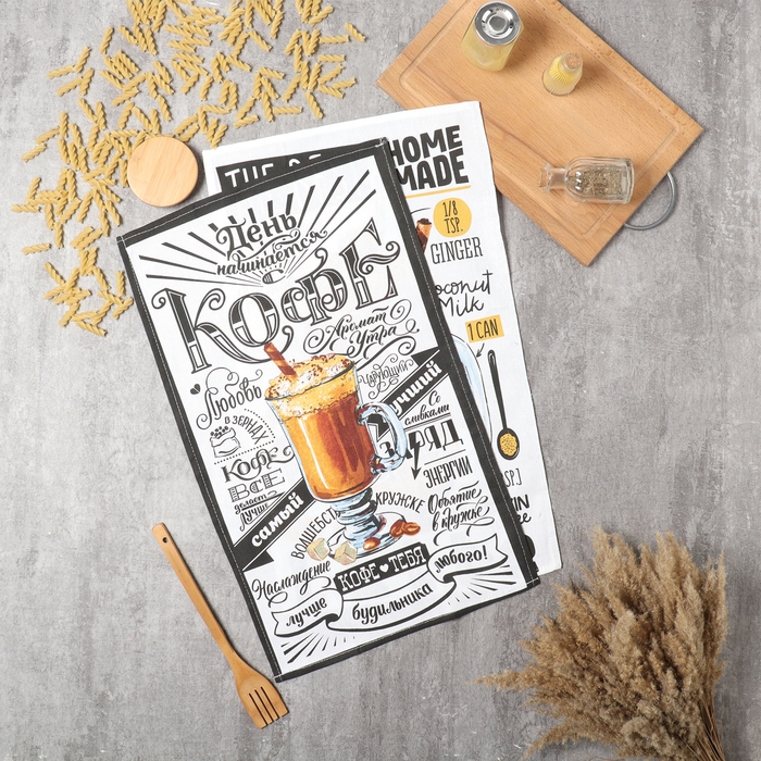 Набор кухонных полотенец Доляна «Любимый кофе» 35х60см-2шт, 100% хлопок