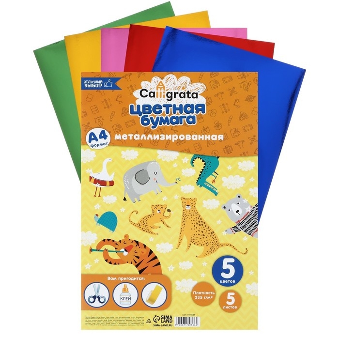 Набор бумаги металлизированной А4, 5 листов, 5 цветов, 235 г/м2