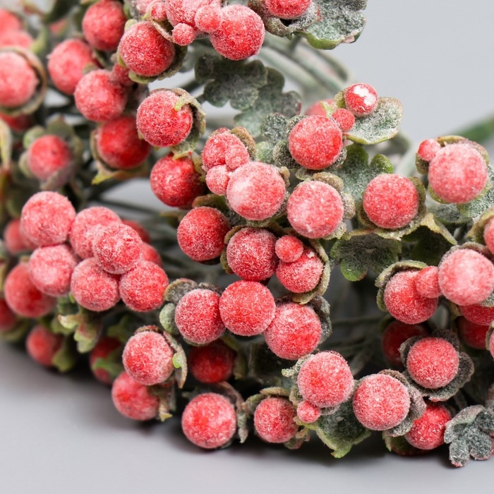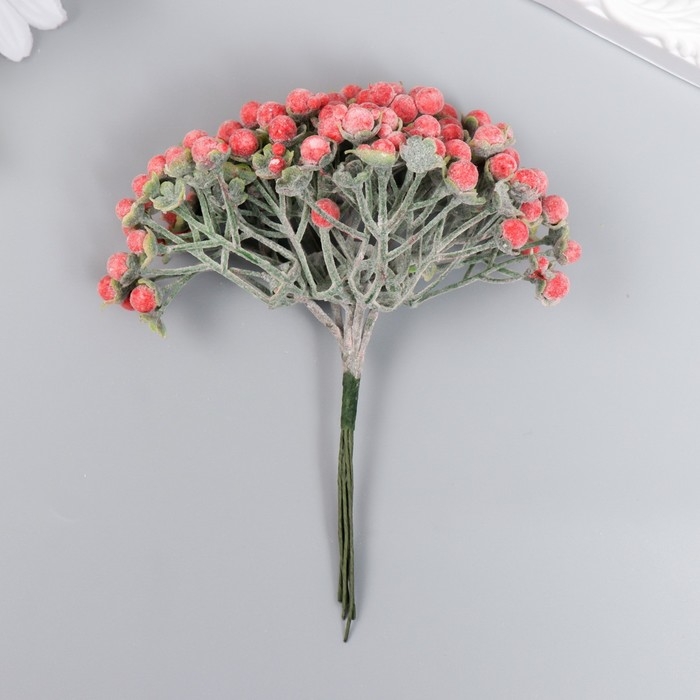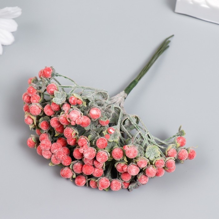 Декор для творчества "Соцветие с красными шариками" d=0,6 см 1 букет=6 цветов 11 см