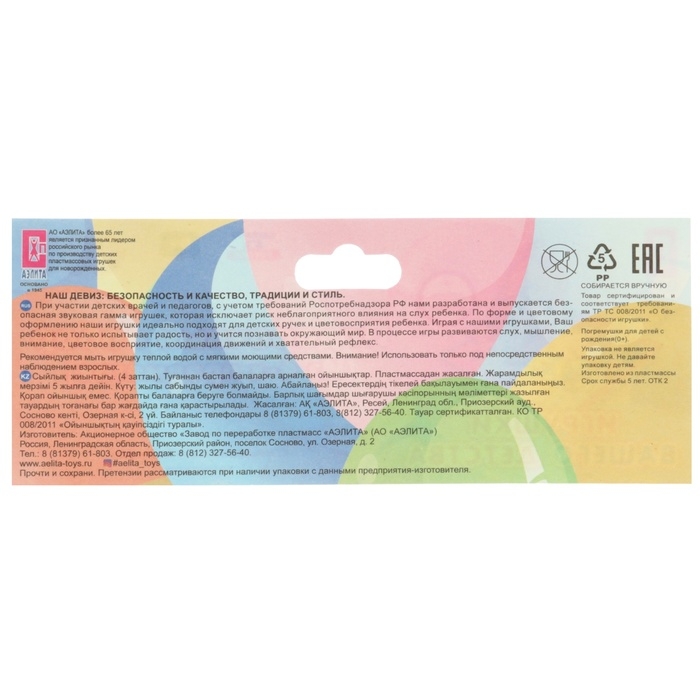 - Легкость и удобство использования: Наши погремушки имеют оптимальный размер и форму для маленьких ручек ребенка. Они легко ухватываются и удобно держатся, позволяя малышу самостоятельно исследовать и играть с ними.