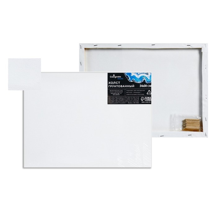 Холст на подрамнике, хлопок 100%, 1,6 х 24 х 30 см, акриловый грунт, мелкозернистый, 280 г/м²