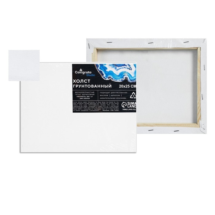 Холст на подрамнике, хлопок 100%, 1.6 х 20 х 25 см, акриловый грунт, мелкозернистый, 280 г/м²