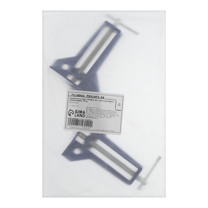 Струбцина угловая ТУНДРА, 90°, винтовой зажим, алюминиевая, 75 мм