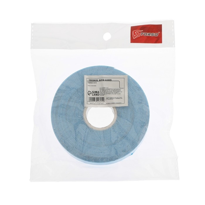Клейкая лента TORSO, двусторонняя, вспененная, синий защитный слой, 15 мм x 5 м