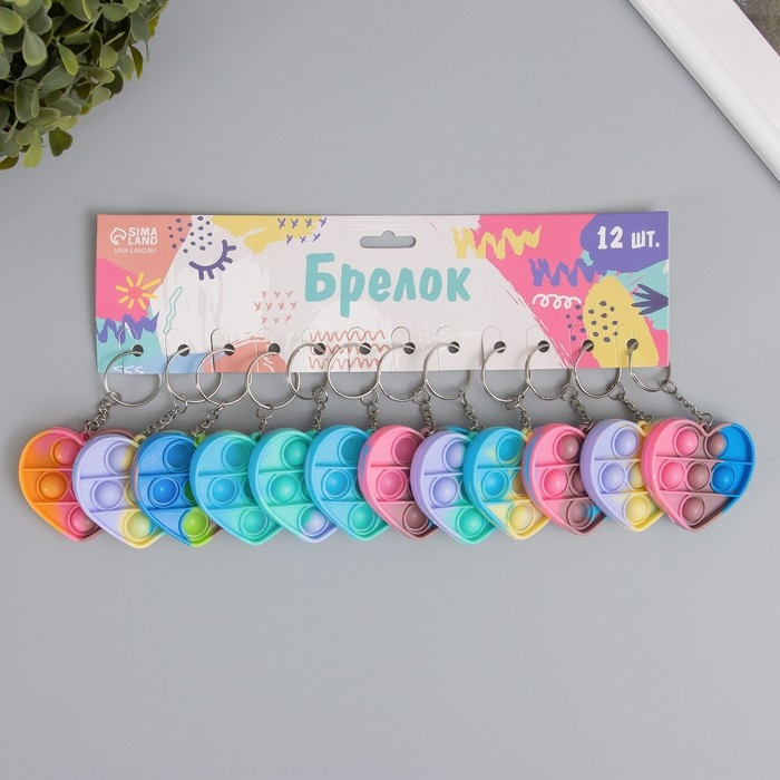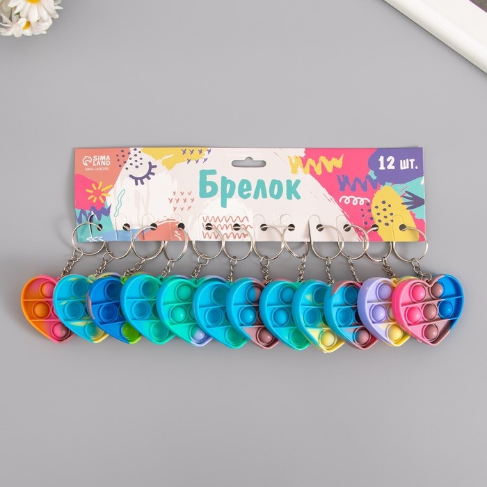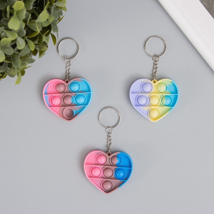Брелок резина антистресс (бесконечная пупырка) "Сердце разноцветное" МИКС 5х5,7х1,3 см