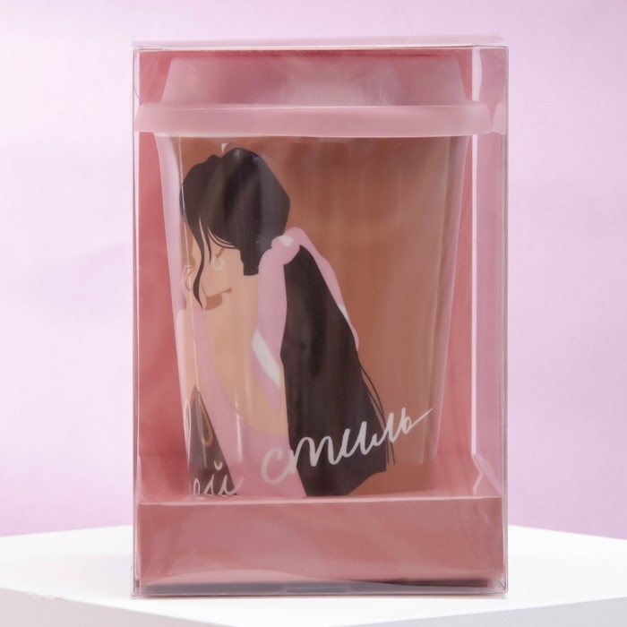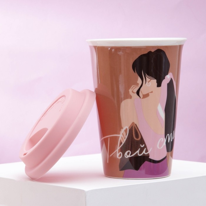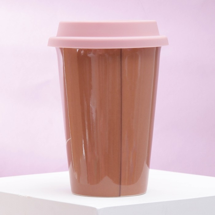 Стакан керамический с силиконовой крышкой «Твой стиль», 300 мл, цвет коричневый