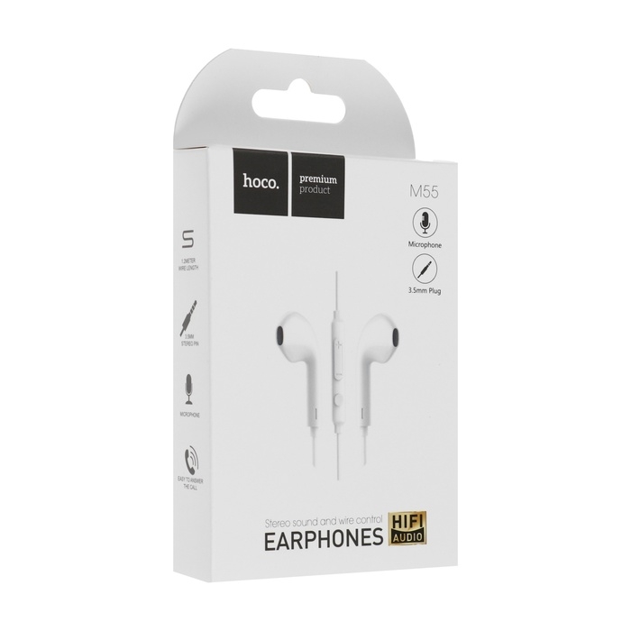 Наушники Hoco M55, проводные, вкладыши, микрофон, Jack 3.5, 1.2 м, белые