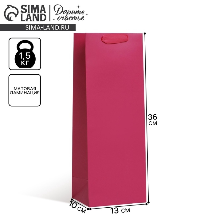 Пакет подарочный под бутылку, упаковка, «Фуксия», 13 x 35 x 10 см